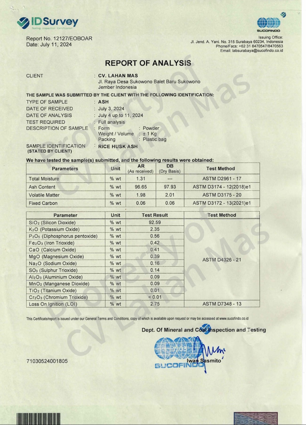 The properties of rice husk ash depend on the burning conditions. Under controlled burning, RHA can have a high silica content (over 90%) and can exist in a highly reactive amorphous form. This makes it an excellent additive in construction, particularly as a pozzolanic material in concrete, where it improves strength, durability, and resistance to chemical attacks.